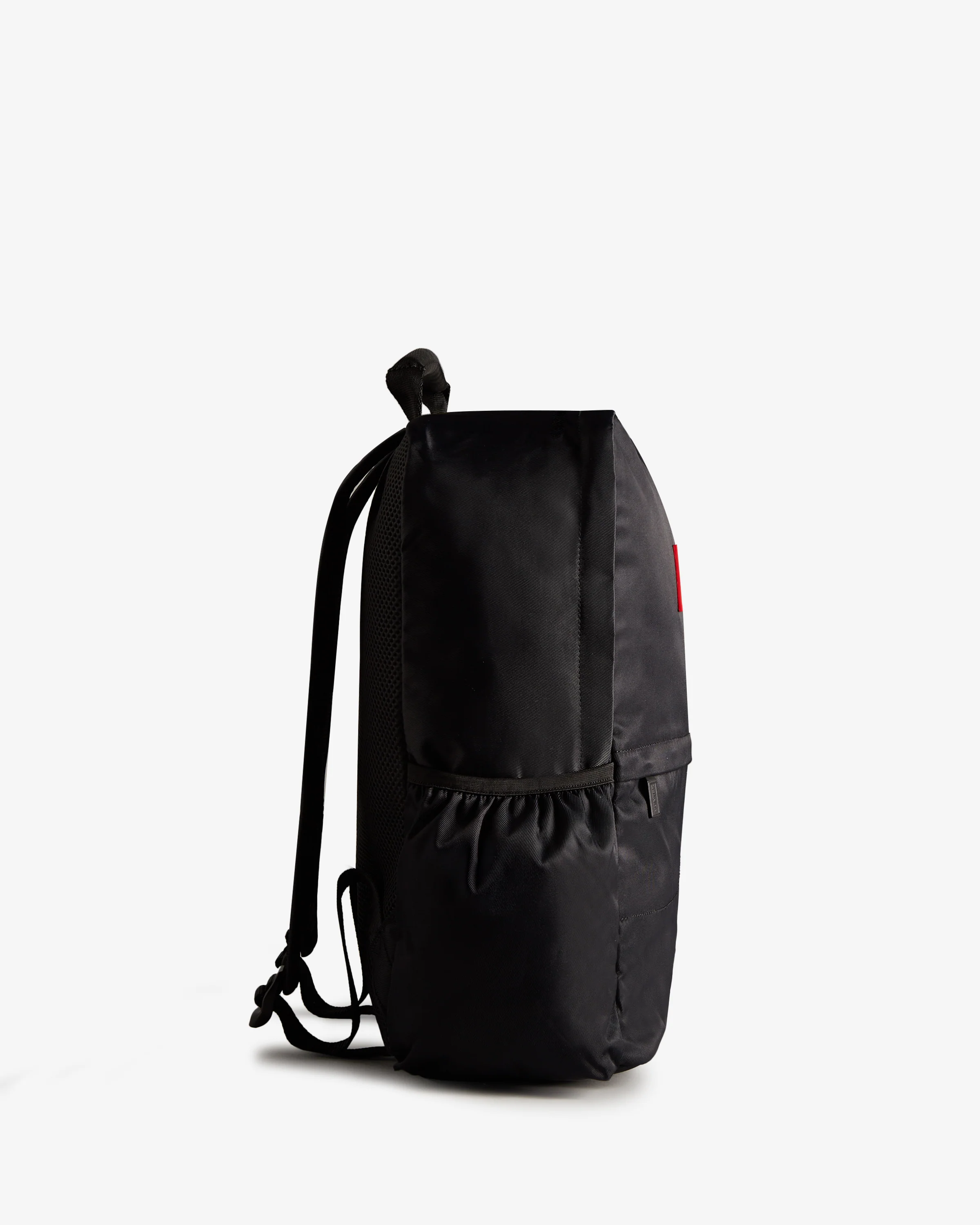 Fitted with a spacious 16L interior, the Original Nylon Backpack in black is perfect for excursions. With a practical zip-around closure, it is crafted from water-resistant nylon to protect belongings from getting wet in light showers. A padded mesh back panel ensures breathability and an internal sleeve offers a safe space on commutes for a 13.5" laptop. The large black backpack features easy access elasticated external pockets suitable for everyday essentials, such as a water bottle or umbrella.